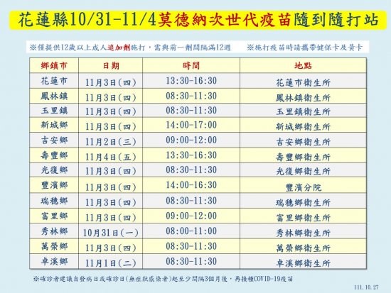 二、 | 依據本年10月27日「衛生福利部傳染病防治諮詢會預防接種組(ACIP)」第8次專家會議決議,經評估疫苗臨床試驗安全性與有效性結果、國內外疫情風險,及參酌國際間追加劑接種政策、衛生福利部食品藥物管理署核准情形,建議Moderna (Spikevax) COVID-19雙價疫苗(原病毒株/Omicron變異株BA.1)實施對象擴及12歲至17歲青少年追加劑接種,包含尚未接種追加劑及已完成單價疫苗追加劑接種者。 |