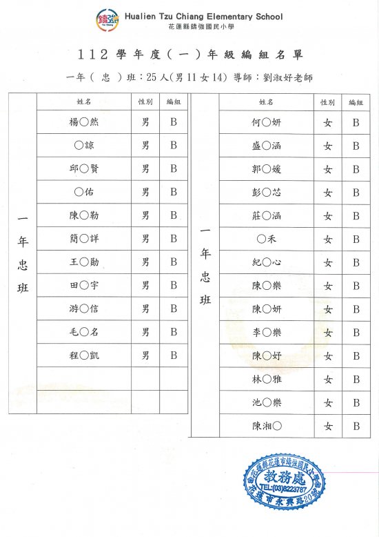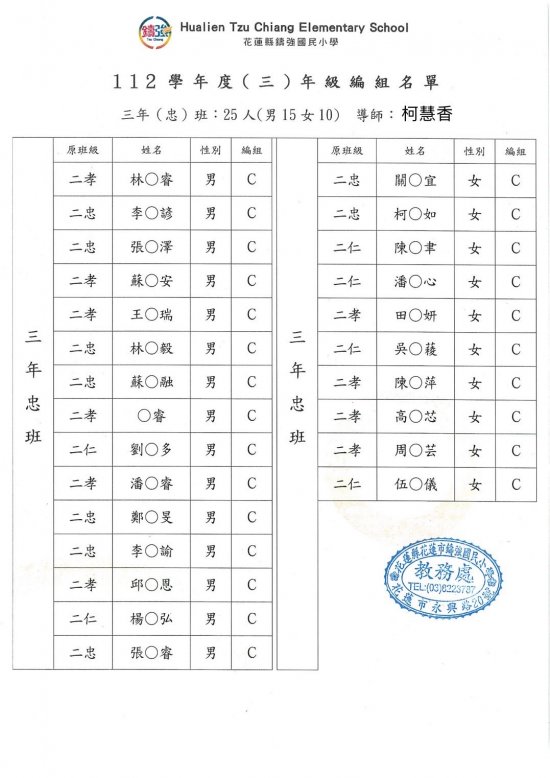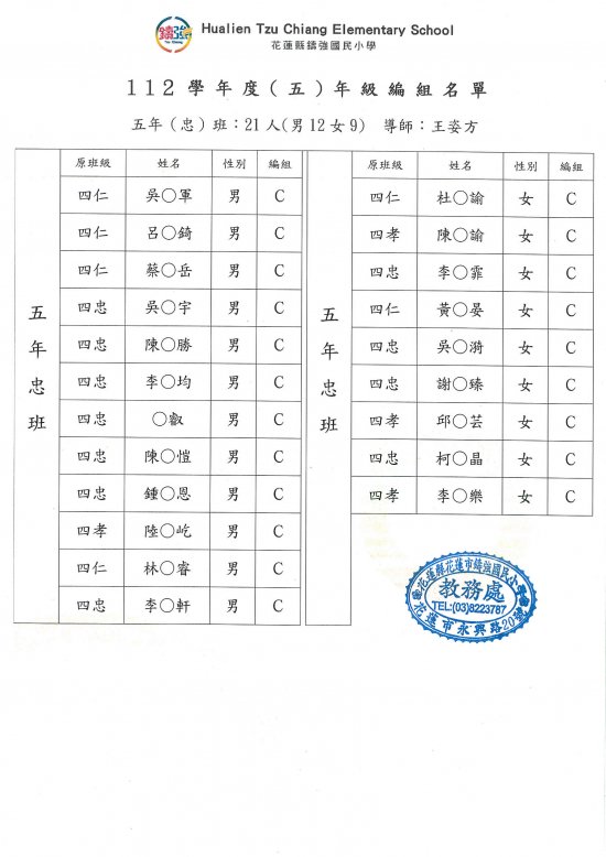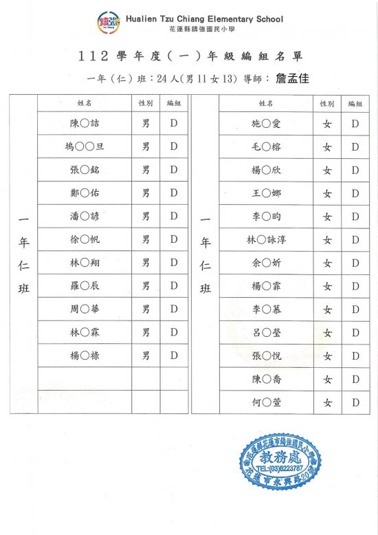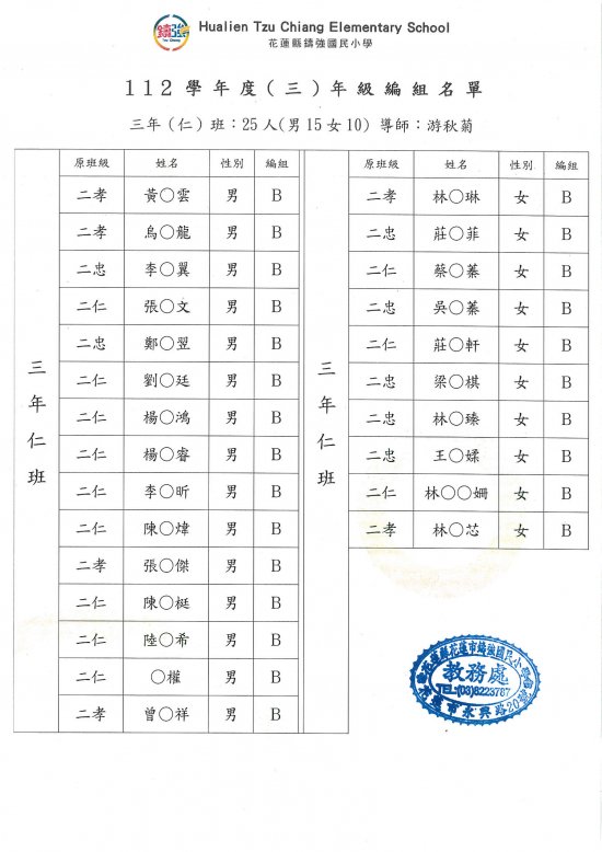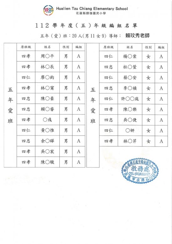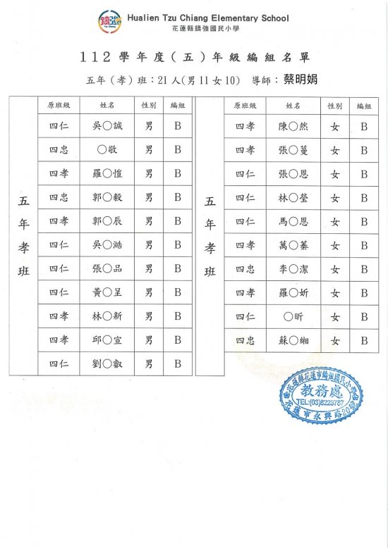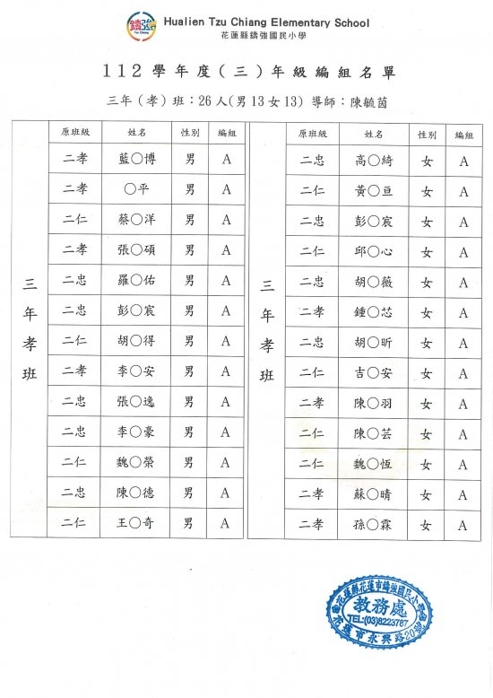 112年7月28日早上已完成一、三、五年級導師編配作業
