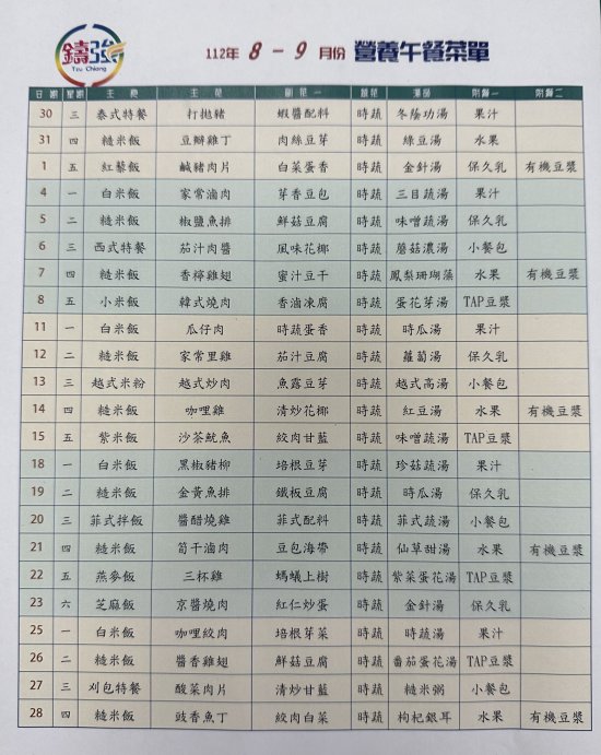 112學年度上學期8~9月營養午餐菜單上菜囉~~