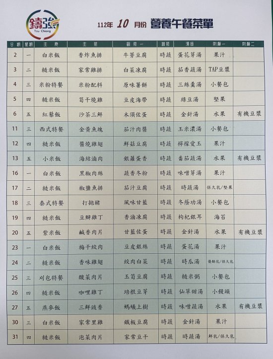 112學年度上學期10月營養午餐菜單上菜囉~~