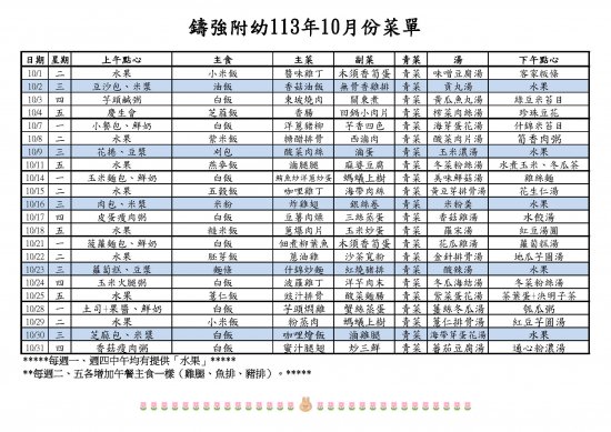 113年10月餐點表