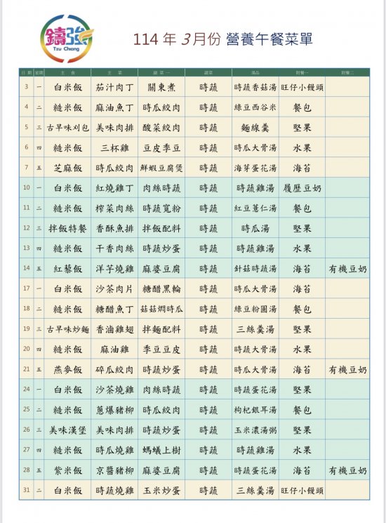 113學年度下學期 3月營養午餐菜單上菜囉~~