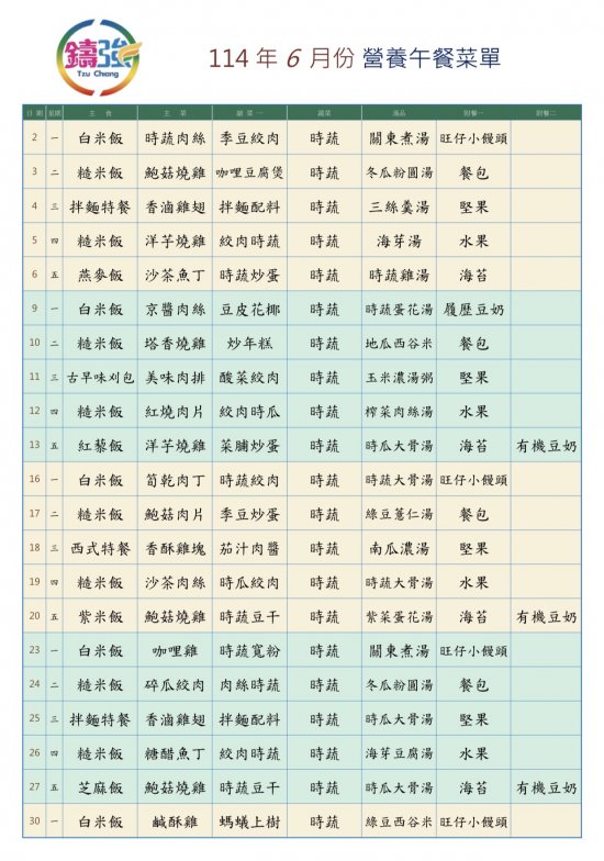 113學年度下學期 6月營養午餐菜單上菜囉~~