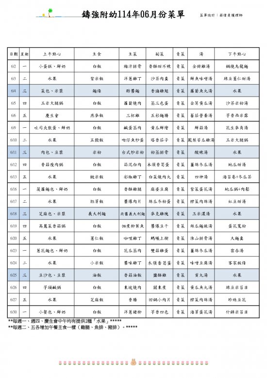 幼兒園6月份菜單