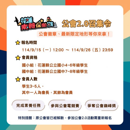 有關114學年度【PaGamO花蓮素養保衛戰2.0】之公會報名 ,詳如說明,請查照。 |
