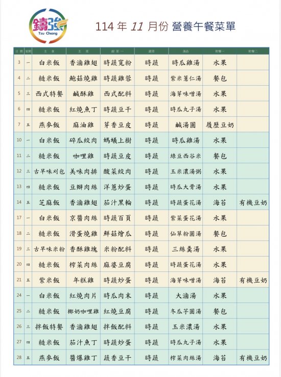 114學年度上學期 11月營養午餐菜單上菜囉~~